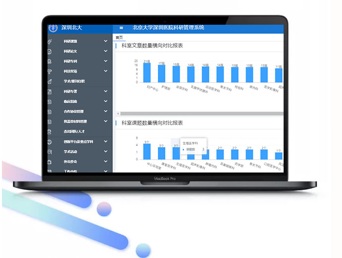 科研管理系统,应用于各个科研院所及高校等研究机构进行科研项目管理、科研成果管理及绩效考核管理等全方位科研管理的一套信息化系统。系统通过统一的数据模型,提供科研课题、科研论文、科技奖项、学术活动、科研专著、外出参会、创新平台及重点学科等数据模块,对科研人员及相关负责人的工作详情进行数据化分析统计,使科研主管部门能够为项目分配合适的资源,确保项目执行并跟踪项目的成果,从而提升科研院所的科研能力及效率。