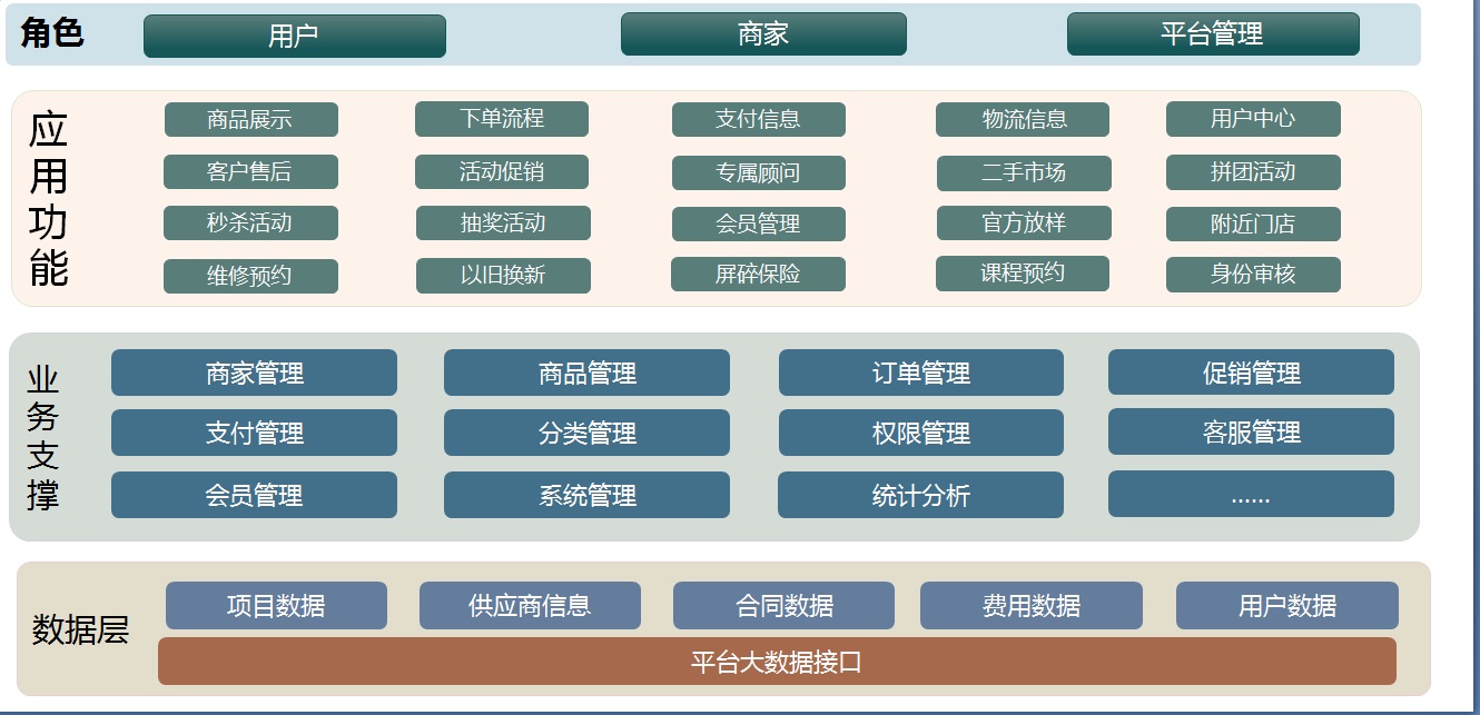 旨在严格规划电商平台的用户的留存、线上线下体验,加强对平台商品的审核,质量的把控,逐步建立完善的数据对接,帮助平台实现各部门的便捷管理,决策层及员工提供决策依据并提高工作效率 。