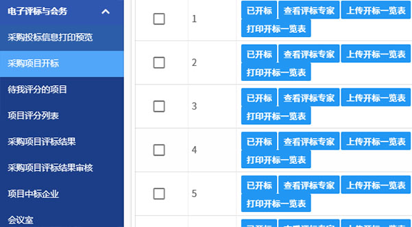 投标时间截止时间结束后,设备科就可对招标的设备逐一开标,以显示分配的评标专家、设备价格、投标企业等信息。